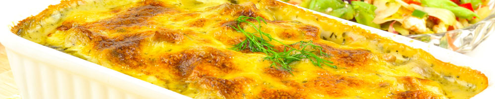 mit gem. Gemüse, Tomaten-Sahnesauce und Käse überbacken